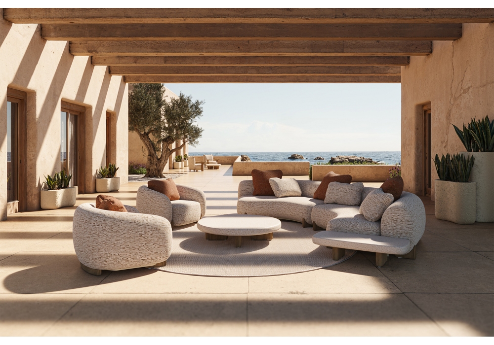 Milos firmata da Jean Marie Massaud per Vondom è una poltrona imbottita con rivestimento in tessuto.