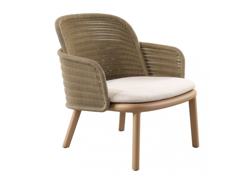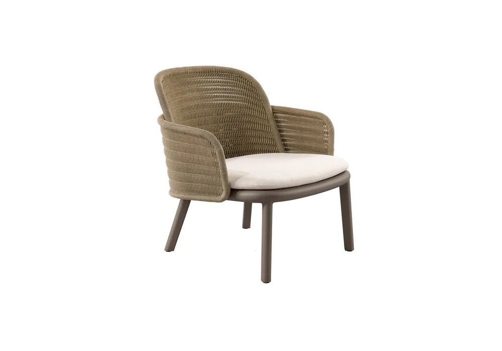 Suro firmata da Christophe Delcourt per Tribù è una poltroncina da esterni con braccioli e struttura interamente composta in alluminio verniciato color clay o in legno teak. Lo schienale è interamento rivestito in corda intrecciata di lino o canapa. La seduta è arricchita da una cuscinatura rivestita in tessuto. Suro è disponibile in differenti finiture.