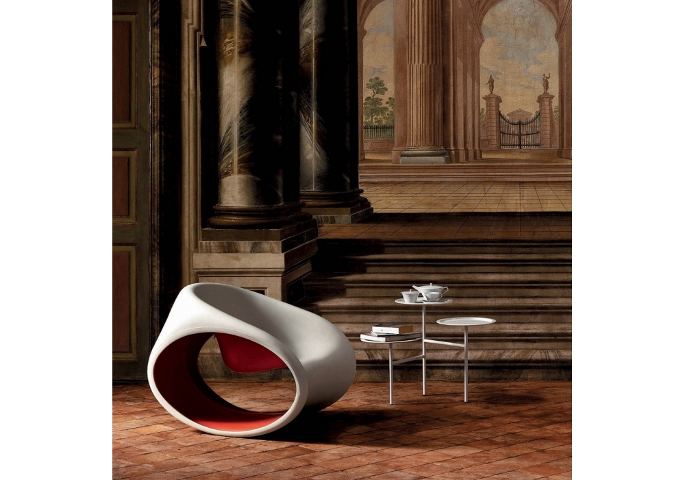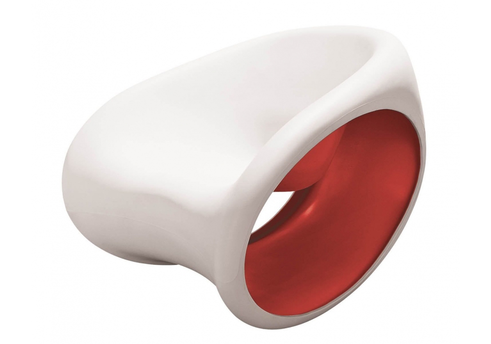 MT3 firmata da Italo Rota per Driade è una poltrona monoblocco in polietilene di colore bianco sabbia (RAL 1013) all'esterno e rosso o nero all’interno. Uso interno/esterno.
