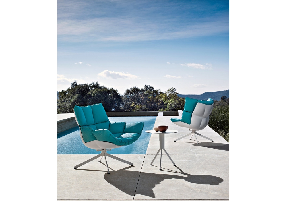 Husk firmata da Patricia Urquiola per B&B Italia Outdoor è una poltrona con scocca in materiale plastico Hirek® in finitura bianca e basamento in alluminio verniciato. Rivestimento in differenti tessuti. Disponibile in due dimensioni.