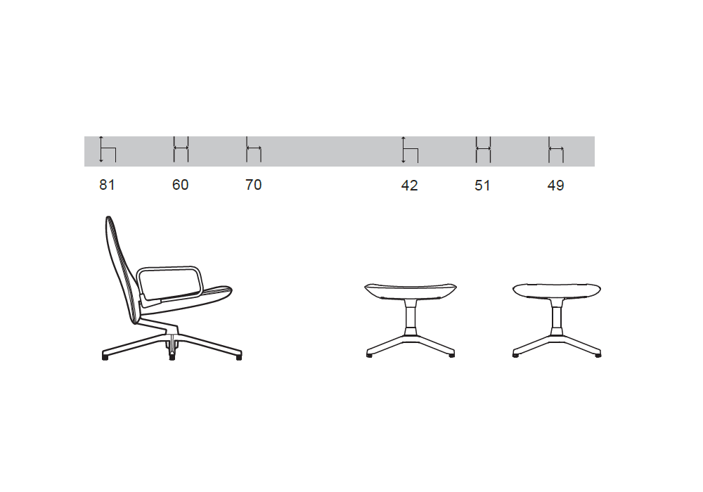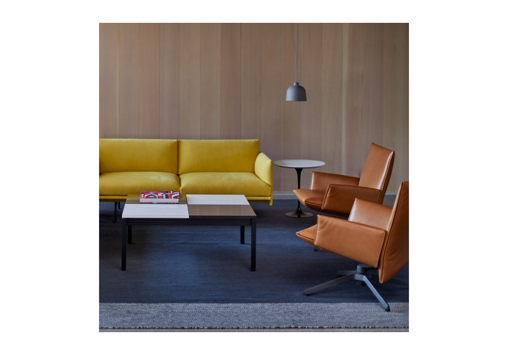 Pilot Chair firmata da Edward Barber & Jay Osgerby per Knoll è una poltrona con braccioli in alluminio o rivestiti in tinta. Base girevole a 4 razze3 in fusione di alluminio lucidata a specchio o verniciata a polvere antracite. Rivestimento in tessuto o pelle.