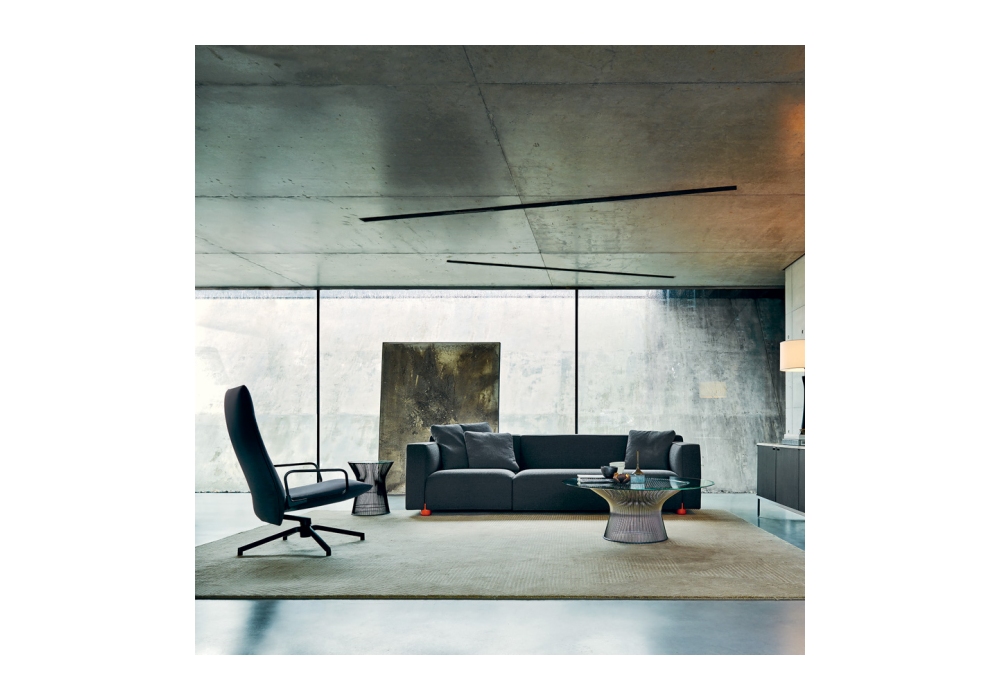 Pilot Chair firmata da Edward Barber & Jay Osgerby per Knoll è una poltrona con schienale alto. Base girevole a 4 razze in fusione di alluminio lucidato a specchio o verniciata a polvere. Rivestimento in tessuto o pelle.