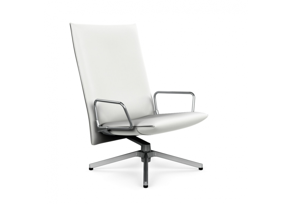 Pilot firmato da Edward Barber & Jay Osgerby per Knoll è una poltrona con base girevole a 4 razze in fusione di alluminio lucidata a specchiio o verniciata a polvere antracite. Rivestimento in tessuto o pelle con braccioli in tinta alla base o al rivestimento.