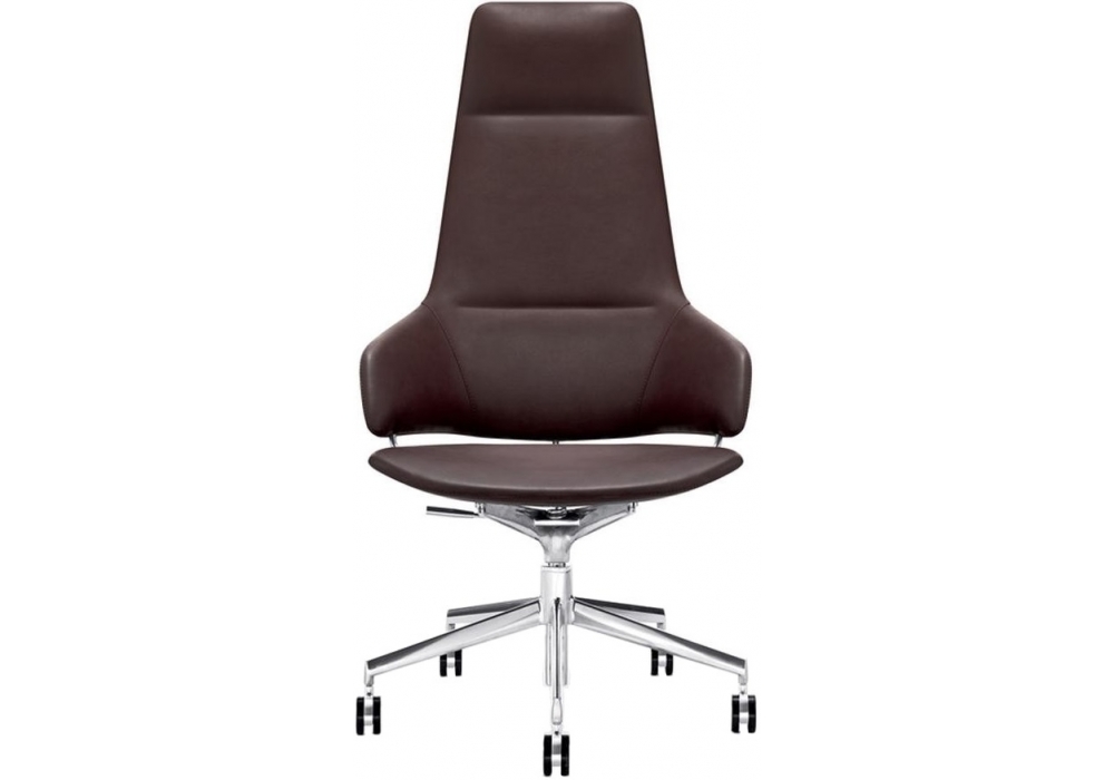 Aston Direction Syncro firmata da Jean-Marie Massaud per Arper è una poltrona direzionale con fusto a cinque razze in alluminio lucido, montato su ruote auto-frenanti, dotato di meccanismo a gas per la regolazione dell’altezza e di meccanismo syncro. La scocca in poliuretano è rivestita in pelle, ecopelle, tessuto.
