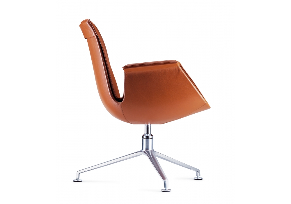 FK Lounge firmata da Preben Fabricius & Jørgen Kastholm per Walter Knoll è una bellissima poltrona con base girevole in alluminio e rivestimento disponibile in diverse pelli. Pattini sintetici adatti a pavimenti in pietra e moquette o richiedibili in feltro per i pavimenti in legno. FK con la sua forma unica, contorni netti e linee pulite è un brillante esempio di efficace concretezza.