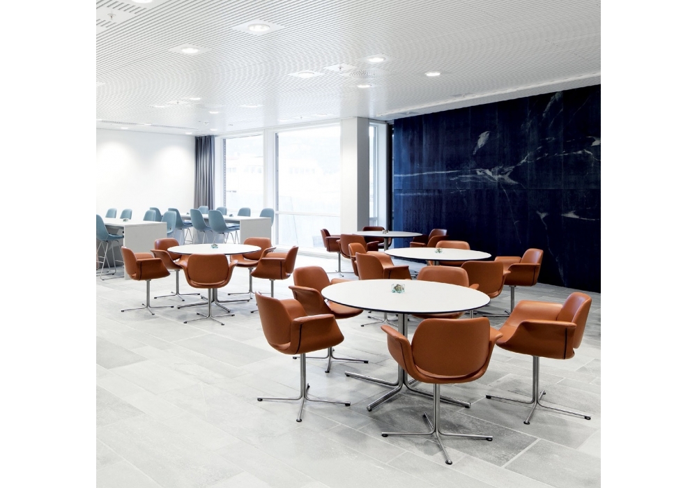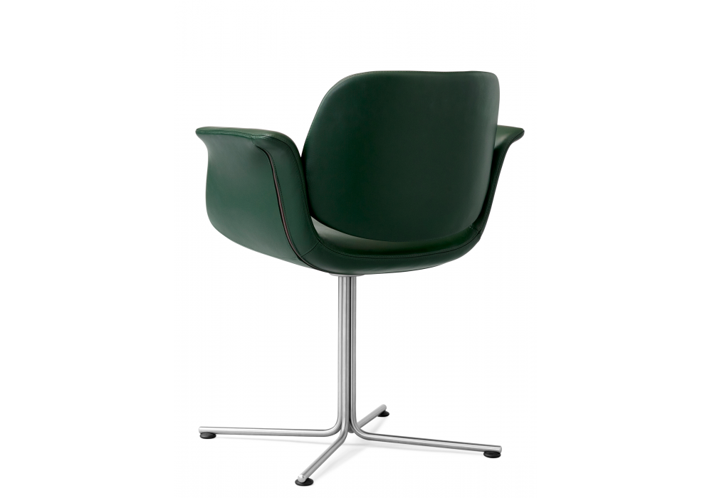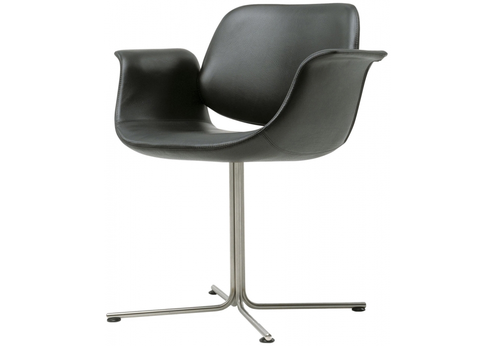 Flamingo firmata da Johannes Foersom & Peter Hiort-Lorenzen per Fredericia è una poltroncina con struttura in tubo d'acciaio e scocca rivestita in differenti pelli o tessuti. Disponibile anche in versione girevole.