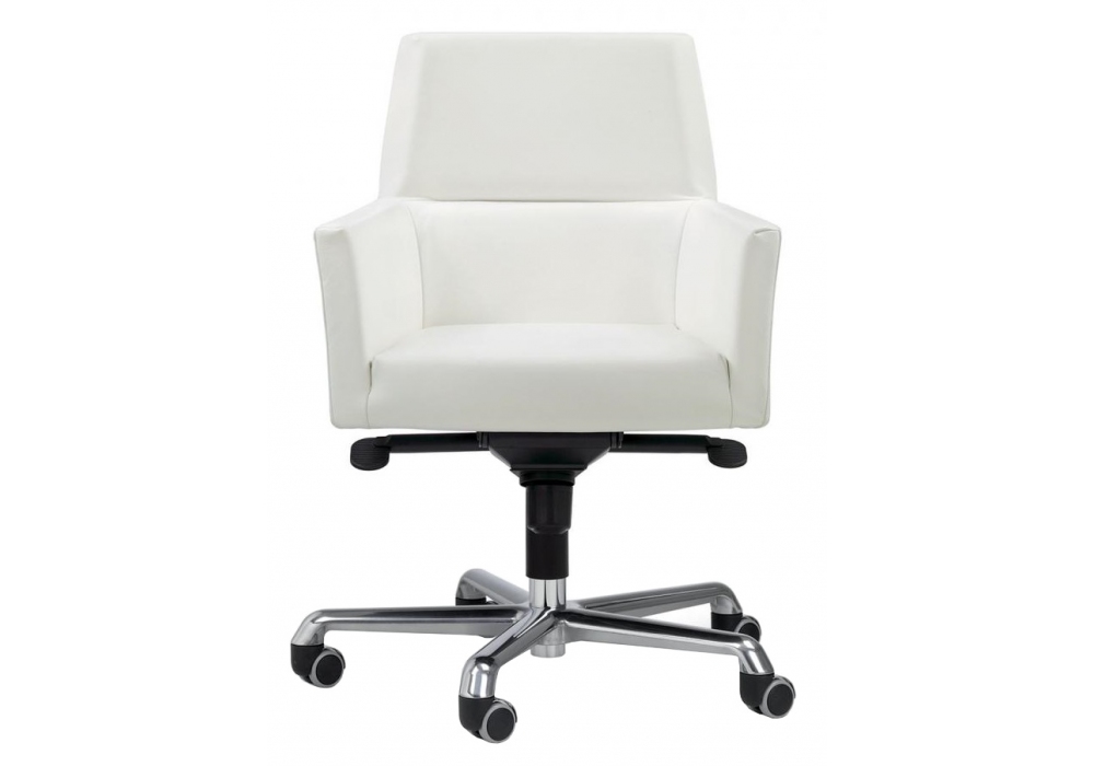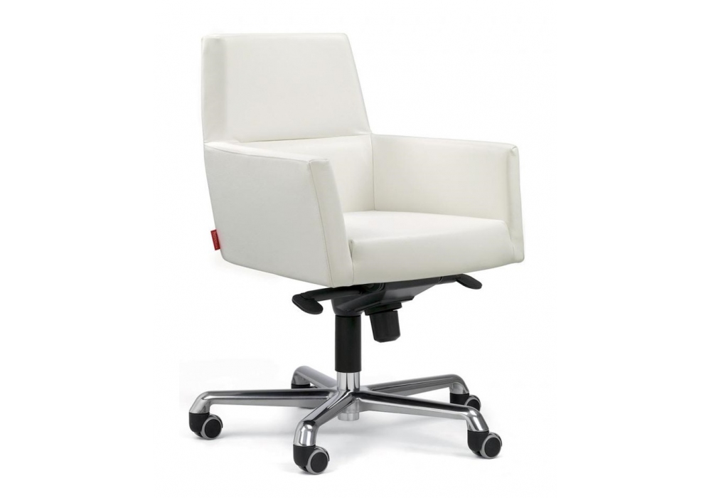 Web firmata da G&R Fauciglietti per Enrico Pellizzoni è una poltrona girevole con struttura portante in metallo, schiumato in poliuretano espanso, rivestimento in pelle. Base con ruote. Meccanismo di regolazione altezza seduta a gas basculante.