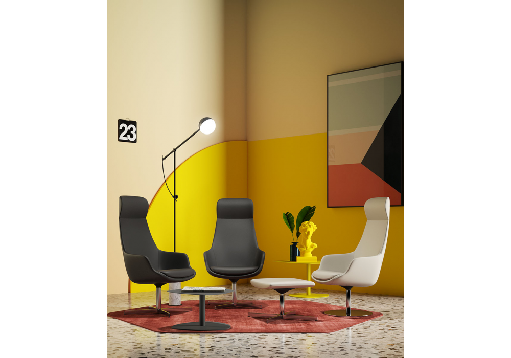 Metropolitan firmata da Edi & Paolo Ciani per Sitlosophy è una poltrona con struttura e braccioli con inserto in acciaio, imbottitura in poliuretano espanso flessibile schiumato a freddo e rivestimento in differenti tessuti, pelli o ecopelli.