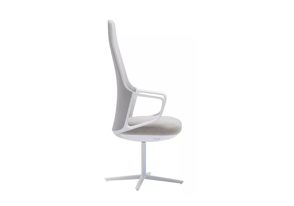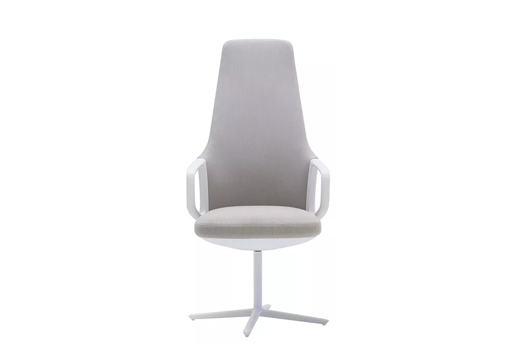 Calma firmata da Benjamin Hubert per Andreu World è una poltrona con schienale medio o alto imbottito e rivestito con differenti tessuti, pelli o simil pelli. Le basi disponibili sono: base centrale girevole, con sistema basculante, in alluminio a 4 pale con sistema di ritorno o 5 ruote regolabili in altezza, in alluminio lucido, finitura bianca o nera e base centrale girevole.