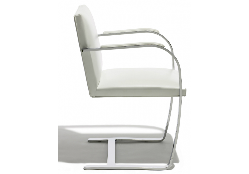Brno firmata da Ludwig Mies van der Rohe per Knoll è una poltroncina dalla struttura piatta realizzata in acciaio cromato lucido. Rivestimento in tessuto o pelle. Disponibile nella versione con o senza braccioli rivestiti.