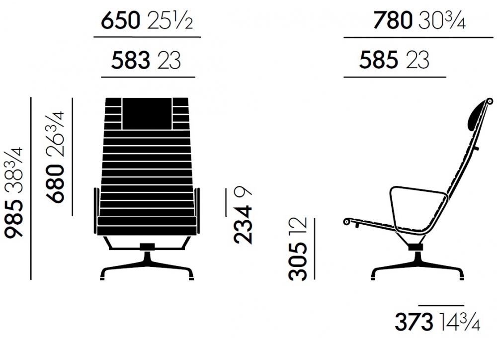 Aluminium Chair è la collezione di sedute firmata da Charles & Ray Eames per Vitra. La Aluminium Chair è uno dei più straordinari elementi d‘arredo di design del XX secolo. Charles e Ray Eames l‘hanno progettata originariamente nel 1958 per la residenza privata di un collezionista d‘arte di Columbus nell‘Indiana (USA).