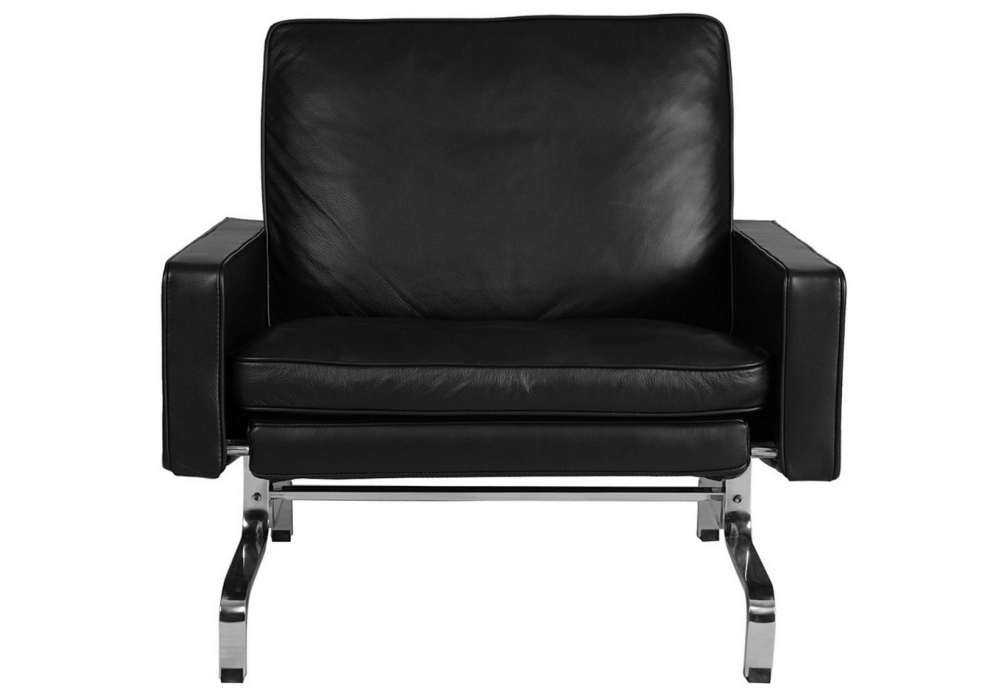 PK31 firmata da Poul Kjærholm per Fritz Hansen è una poltrona realizzata con rivestimento in pelle e base in acciaio cromato opaco. Disponibile in diverse finiture.