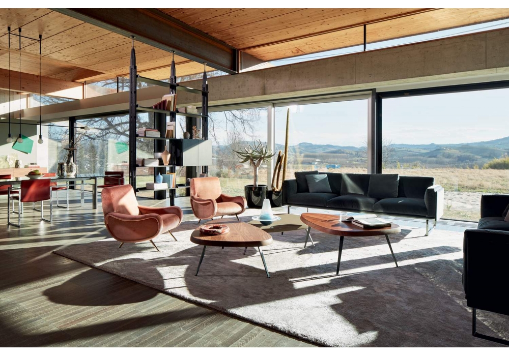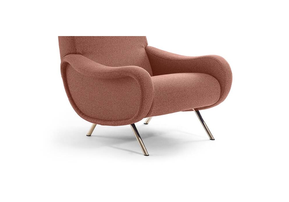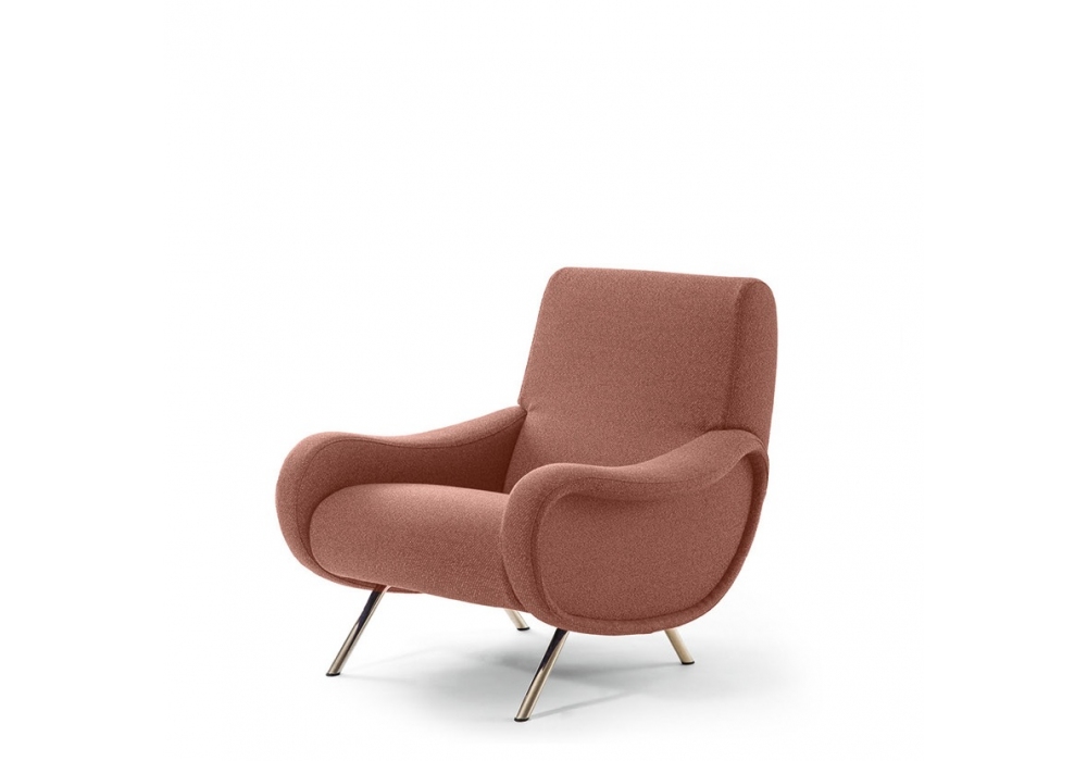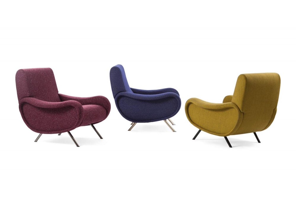 720 Lady firmata da Marco Zanuso per Cassina è una poltrona realizzata con struttura interna con telaio in tubolare d’acciaio dotato di cinghie elastiche, imbottitura in poliuretano espanso e ovatta di poliestere e rivestimento in tessuto o in pelle.