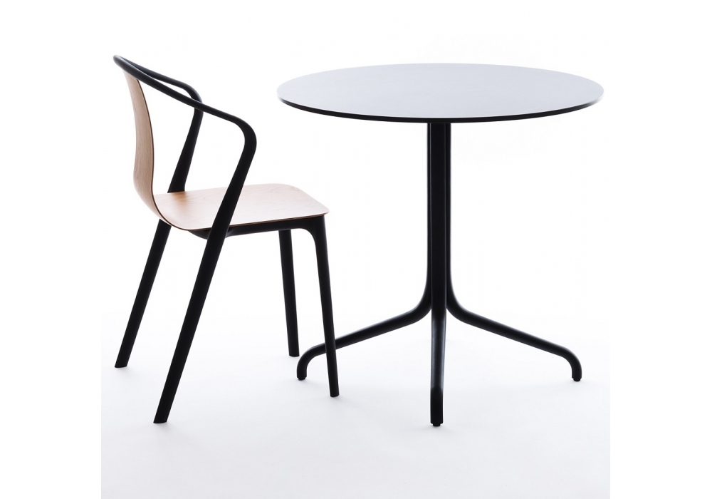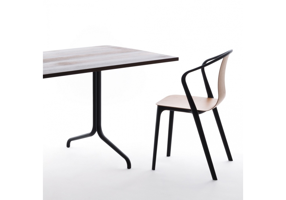 Belleville Armchair Wood firmata Ronan & Erwan Bouroullec per Vitra è una poltrona impilabile con scocca in legno multistrato curvato e finitura protettiva laccata naturale. Basamento e telaio in poliammide stampato a iniezione. Si chiama Belville, come il vivace quartiere parigino animato da bistrò e caffè dove si trova proprio lo studio dei designer, la nuova collezione progettata per Vitra: tavoli, poltrona e sedia dall’aspetto familiare, sobrio, ma con dettagli costruttivi interessanti, che si rivelano a un secondo sguardo. Dietro questa apparente ‘normalità’ di forme e materiali si cela un lungo lavoro di ingegnerizzazione e messa a punto, come ci racconta Erwan Bouroullec. “Il nostro riferimento di partenza per la realizzazione della sedia della collezione, era un modello #84 che fosse però pop, che contenesse anche della gioia. Pensavo al Pop di Andy Warhol, alla tensione che tutto il suo lavoro aveva nei confronti del mercato di massa. Le difficoltà sono arrivate con l’ingegnerizzazione, continuavamo ad aver spessori troppo importanti che non si adattavano alla nostra visione finale.