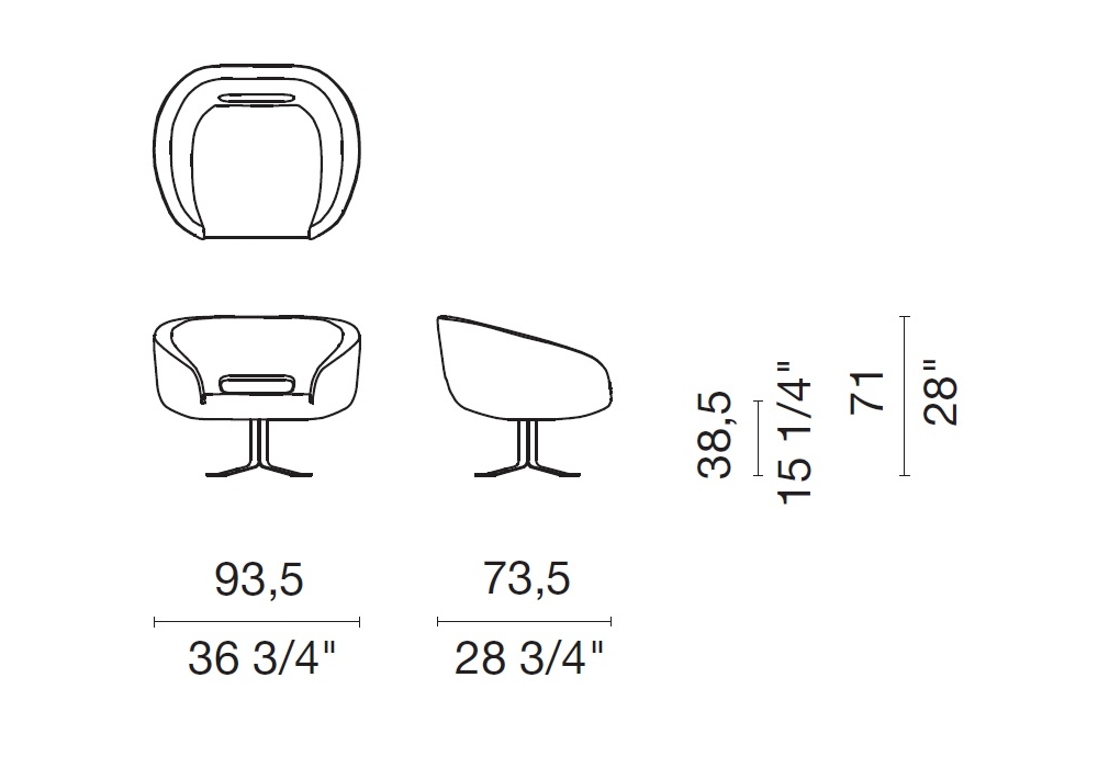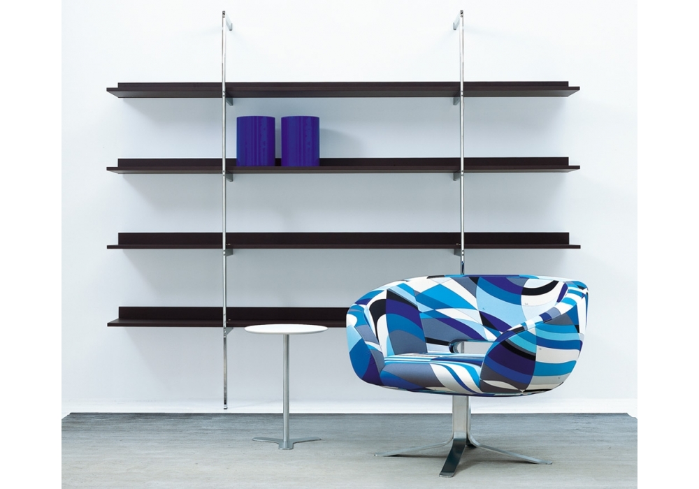 Rive Droite firmata da Patrick Norguet per Cappellini è una poltrona con base girevole in acciaio inox satinato. Rivestimento fisso in tessuto, pelle e una selezione di tessuti firmati da Emilio Pucci. Disponibile in diverse finiture.