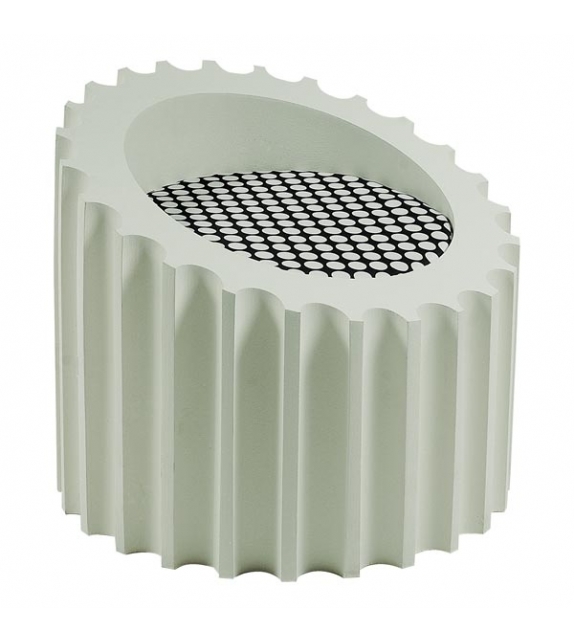 Attica firmata da Studio65 per Gufram è una poltrona imbottita in poliuretano espanso e rifinita a mano con Guflac Ultra. Rappresenta la sezione di una colonna greca.