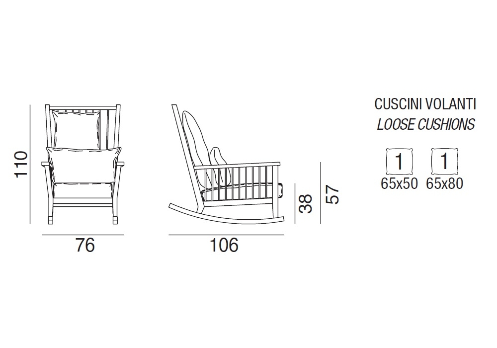 Cuscini volanti: Nr. 1_ 65 x 50 cm; Nr. 1_ 65 x 80 cm.