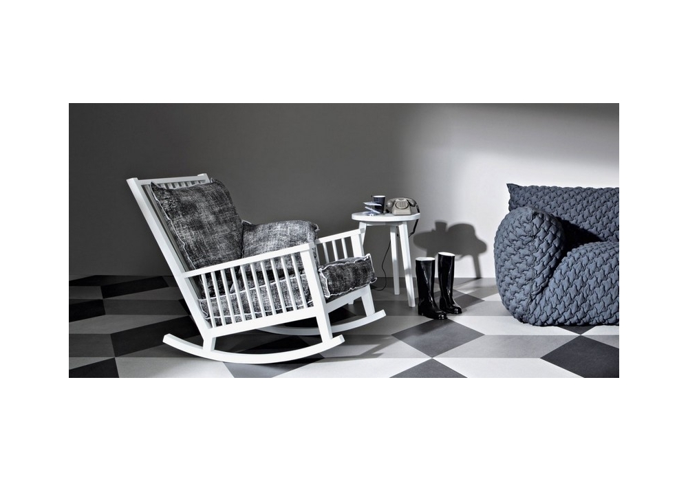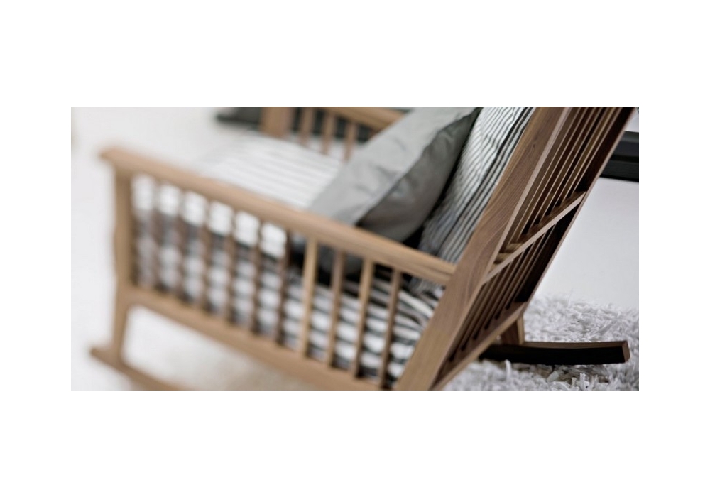 Gray 09 firmata da Paola Navone per Gervasoni è una sedia a dondolo realizzata con struttura in noce o rovere i cuscini sono in misto piuma con rivestimento in tessuto.