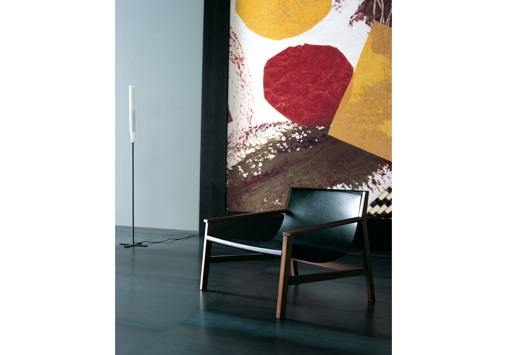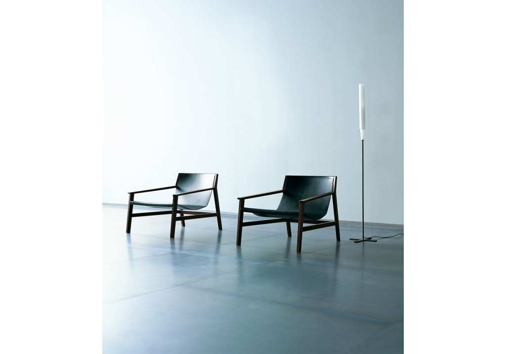 Sdraio firmata da Piero Lissoni per Living Divani è una poltrona di legno e cuoio per interni. Uno scheletro semplicissimo. Una seduta di ispirazione scandinava. Nella nuova versione bianca, Sdraio acquista un'aria più disinvolta e glamour. Poltrona con struttura portante in noce nazionale con verniciatura acrilica naturale o tinta ebano, oppure finitura manuale con idropittura e vernice a basso impatto ambientale, colore bianco. Rivestimento in tessuto panno di lana, in crosta o in cuoio nei colori a collezione. Profondità di seduta 51cm.