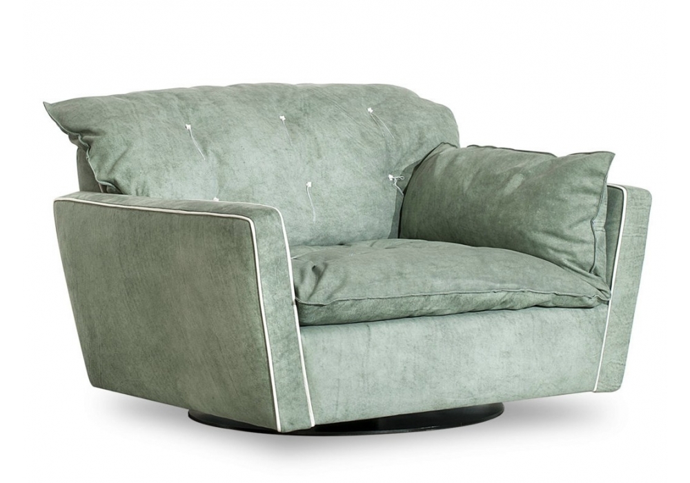 Sorrento firmata da Paola Navone per Baxter è una poltrona girevole con braccioli e rivestimento in pelle.
