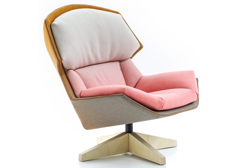 Clarissa firmato da Patricia Urquiola per Moroso è una poltrona con basamento girevole in acciaio rivestito in rovere. Il basamento metallico è sempre verniciatocanna di fucile. Una seduta e il suo doppio: da un lato contiene e protegge, dall’altro distende e accoglie. Una vistosa ambivalenza che separa artificiosamente forma e contenuto, immagine e concetto, che non a caso suggerisce con il nome – hood, cappuccio – una doppia funzione. Il cappuccio è un simbolo antico e contemporaneamente urbano; protegge e incornicia il viso ma può nascondere, negare il dialogo e il confronto. L’impatto è forte, tutto giocato sul filo del contrasto: le tre dimensioni sembrano recitare la geometria bidimensionale del disegno, la sovrapposizione cromatica non divide ma complementa, la tensione non viene sopita ma stabilizzata. Clarissa è poltrona relax dinamica, pronta allo scatto ma disposta al riposo, alla sospensione temporanea delle attività. Una combinazione di agonismo e collaborazione, di provocazione ed estetica.