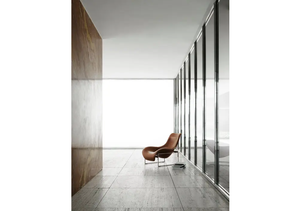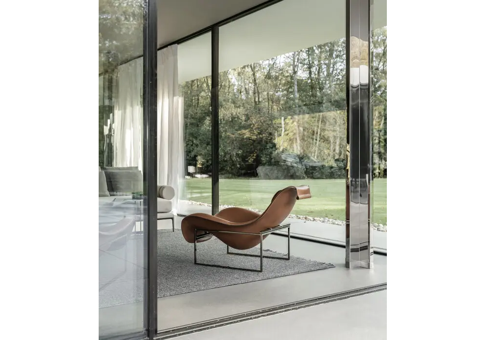 Mart firmata da Antonio Citterio per B&B Italia è una poltrona relax con movimento basculante con struttura in acciaio cromato o veniciato. Rivestimento in pelle o cuoio. Disponibile con o senza cuscino poggiatesta, compreso di contrappeso poggiatesta nelle stesse finiture della struttura.