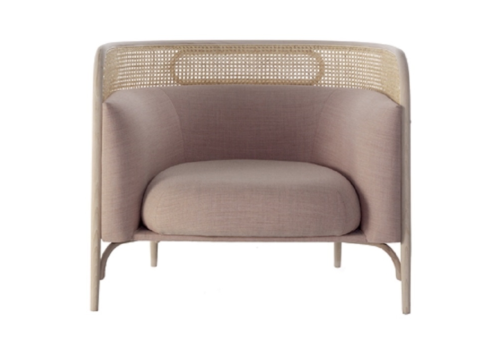 Targa Lounge firmata da GamFratesi per Gebrüder Thonet Vienna è una poltrona lounge con struttura in faggio curvato. Ampio cuscino di seduta e schienale imbottiti con rivestimento in tessuto o pelle, bordi terminali in paglia di Vienna. Disponibili puntali in ottone.