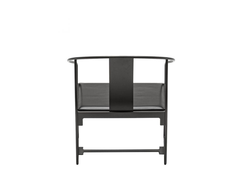 Mingx firmata da Konstantin Grcic per Driade è una poltrona con struttura in in tubo e lamiera di acciaio stampato verniciato a polvere epossidica nei colori arancio, grigio chiaro, bronzo e nero. Piedini in abs. Seduta in cuoietto. Uso solo interno.