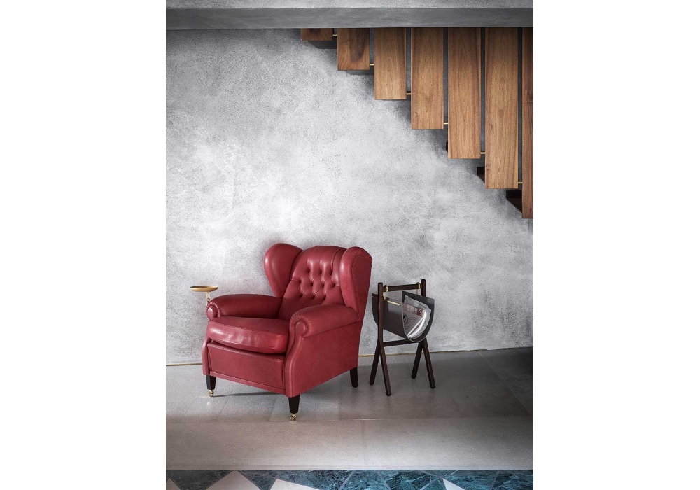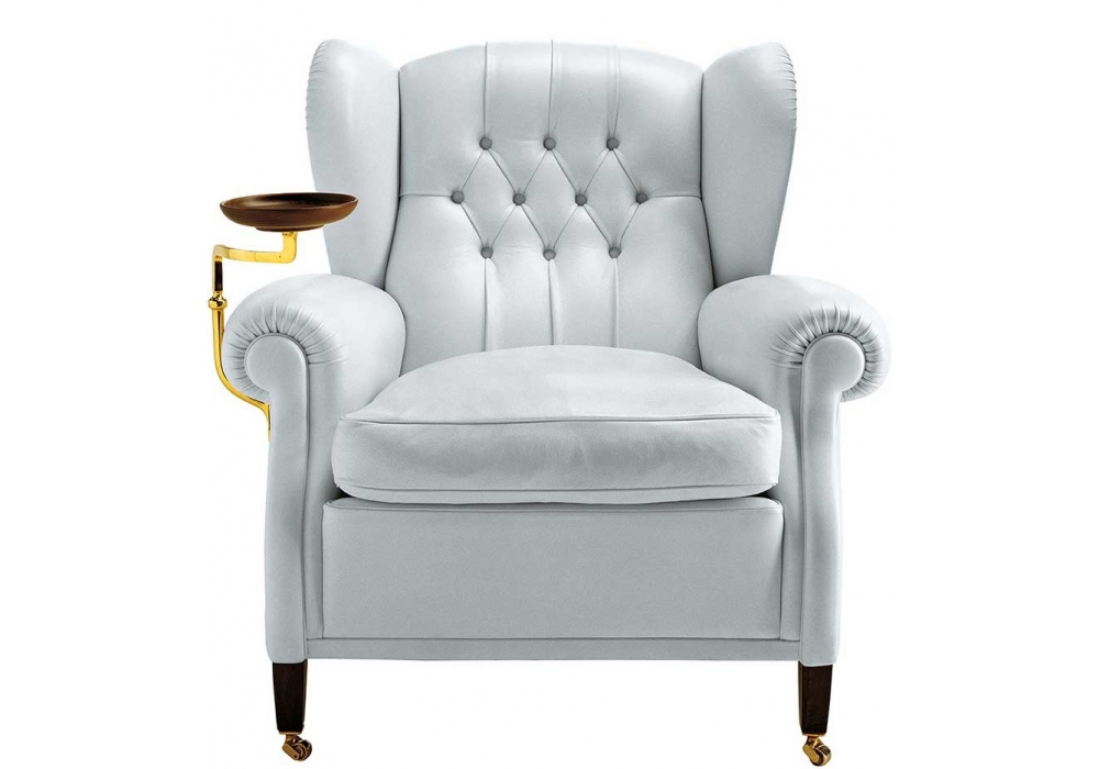 1919, firmata da Poltrona Frau, è una poltrona con struttura portante in faggio stagionato e cuscino seduta in piuma d'oca. I piedi posteriori sono in faggio tinto noce scuro e quelli anteriori sono dotati di ruote in ottone con finitura dorata o grigio canna di fucile. Questa poltrona è disponibile nella versione senza piastra o con portacenere/portabicchieri (a destra o a sinistra). Lo schienale presenta un design capitonné realizzato a mano. Lo schienale esterno della sedia è rifinito con una fila di chiodini rivestiti in pelle. Rivestimento in Pelle Frau®.