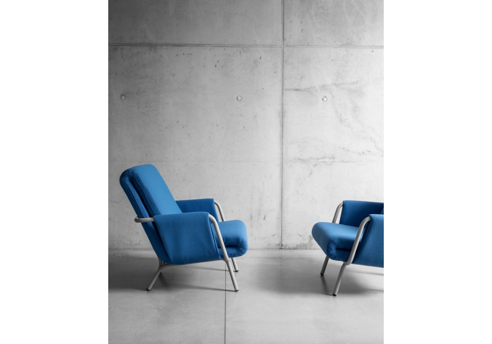Diplopia firmata da Skrivo per Miniforms è una poltrona con struttura in metallo verniciato. Il cuscino è realizzato in poliuretano espanso con rivestimento in tessuto.