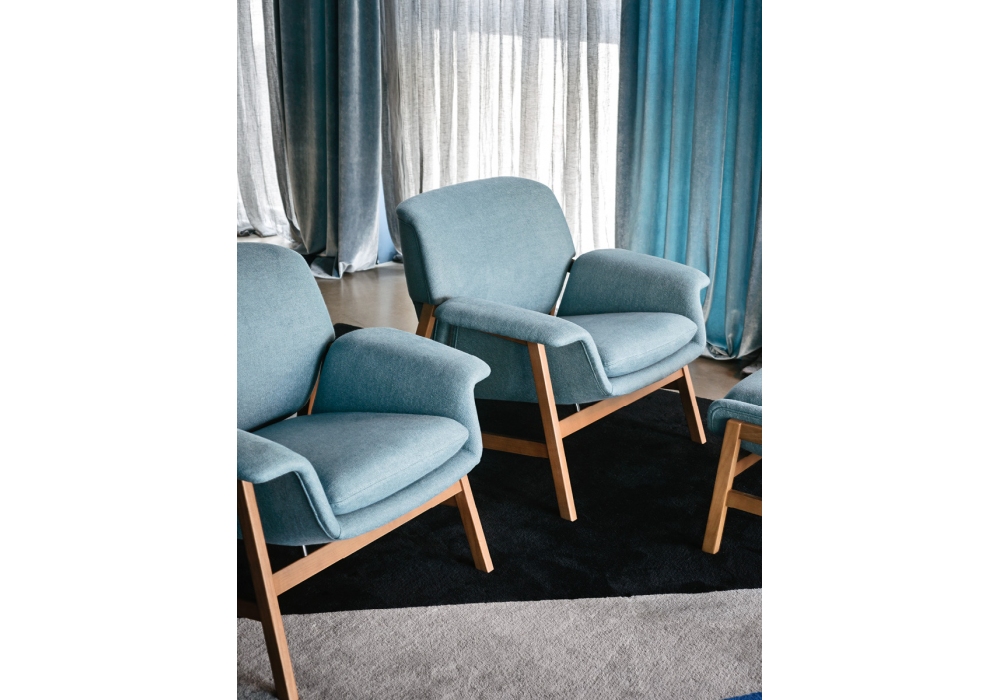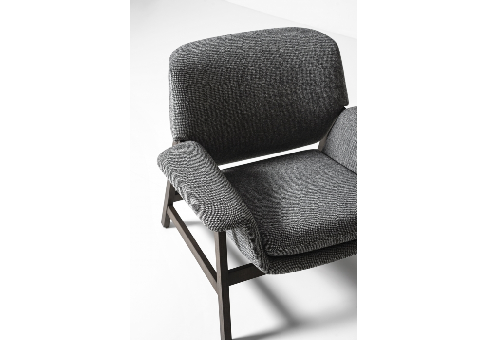 Agnese firmata da Gianfranco Frattini per Tacchini è una poltrona con struttura in legno massello tinto nel colore noce o grigio. Il rivestimento, non sfoderabile, è disponibile in tessuto o pelle in diversi colori.