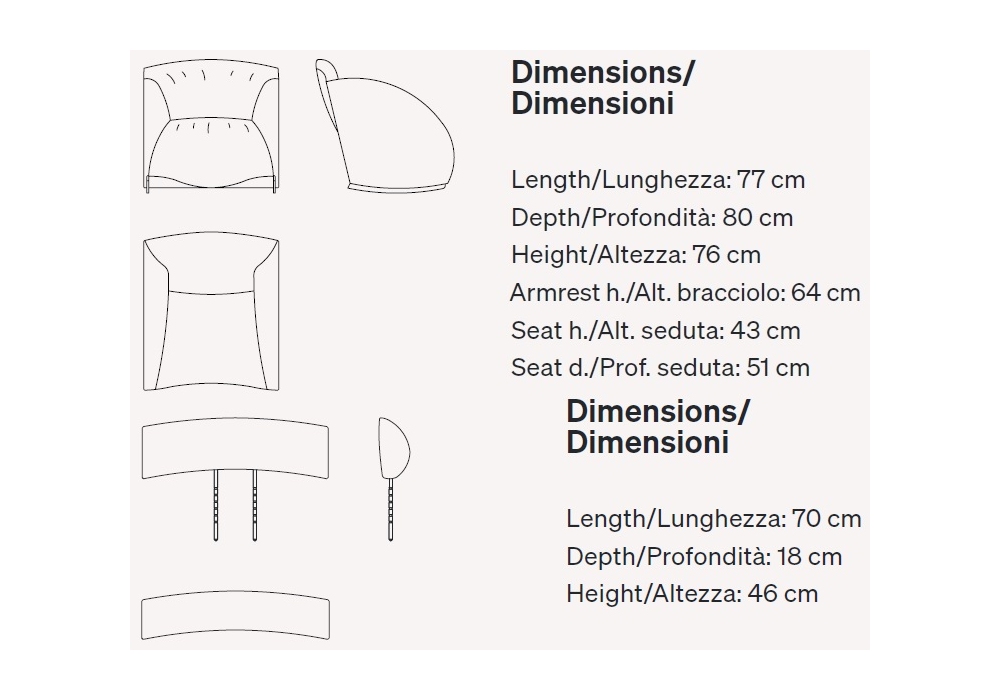 | Altezza | 77 + 46 cm (poggiatesta) |