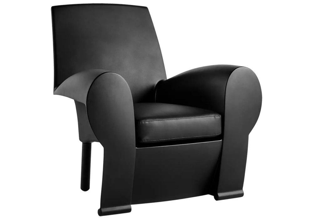 Richard III firmata da Philippe Starck per Baleri Italia è una bellissima poltrona con struttura interamente stampata in poliuretano rigido strutturale, verniciato con smalti poliuretanici in nero opaco. Cuscino in poliuretano espanso e dacron rivestito in pelle.