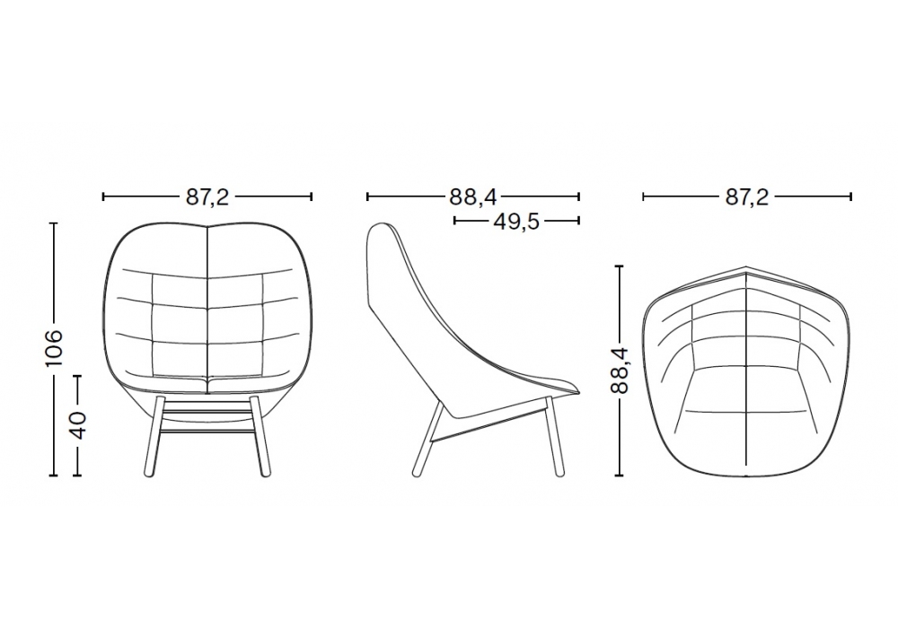 Uchiwa Quilt firmata da Doshi Levien per Hay è una poltrona con scocca trapuntata con schiuma poliuretanica HR stampata con uno strato di ovatta per un volume extra e base in massello di rovere. Disponibile con differenti rivestimenti.