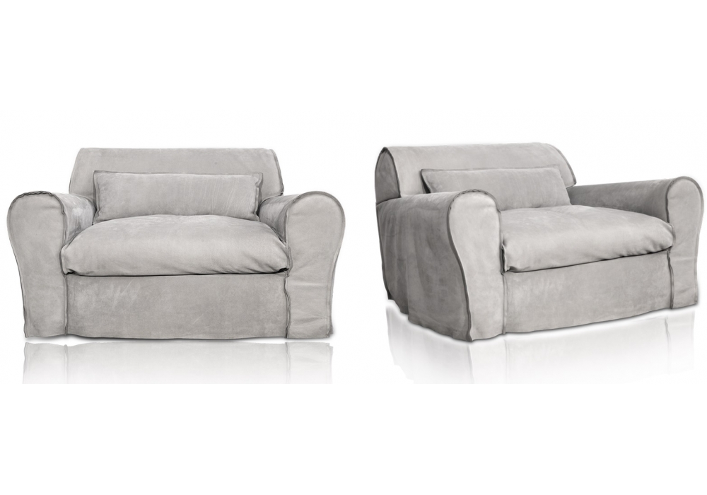 Housse Extra firmata da Paola Navone per Baxter è una poltrona con rivestimento in pelle morbida. Struttura in legno tamburato di abete e pioppo. Piedini in faggio tinto noce. Imbottitura in poliuretano espanso a densità differenziata e fodera realizzata con fibre acriliche. Molleggio a nastri elastici intrecciati di caucciù rivestito. Cuscinatura di seduta e poggiareni in memofil con chips in viscoelastico. Rivestimento con cuciture a filo vivo.