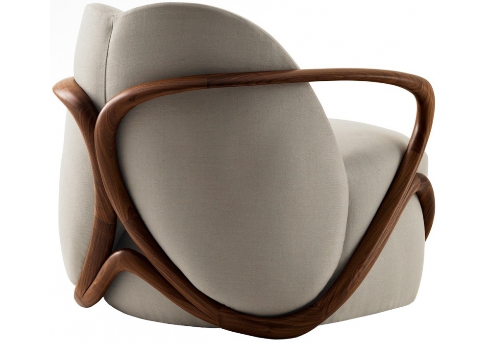 Hug firmata Rossella Pugliatti per Giorgetti è una poltrona con struttura in noce canaletto con rivestimento in tessuto o pelle.