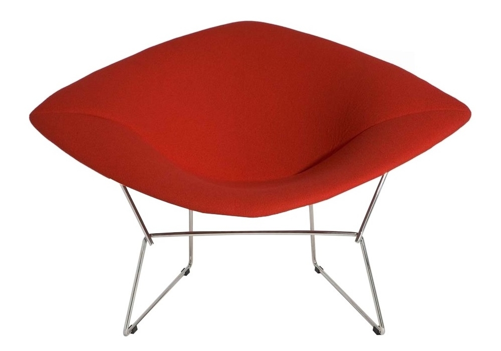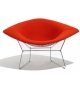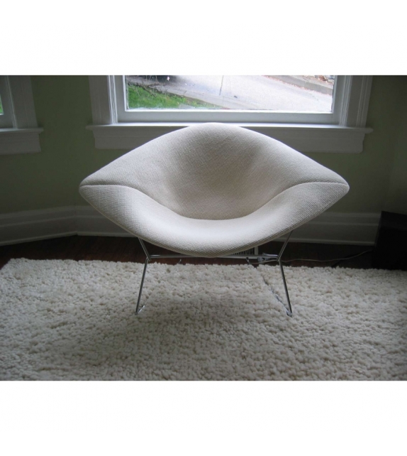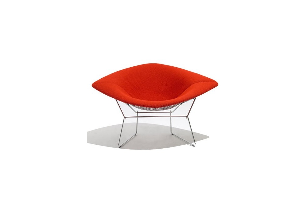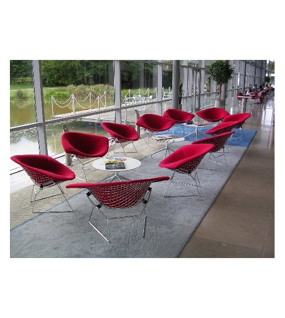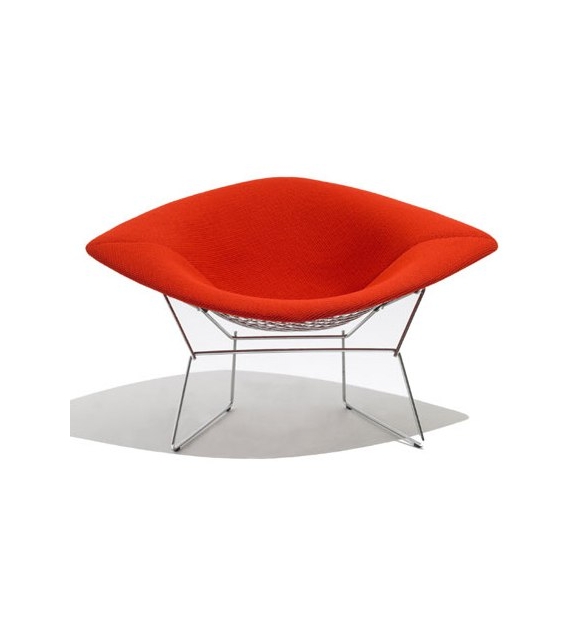 Bertoia Large Diamond firmata da Harry Bertoia per Knoll è una poltrona con struttura in tondino d'acciaio saldato ad ogni intersezione con finitura cromata lucid a o in Rilsan. Rivestimento in differenti tessuti o pelli.