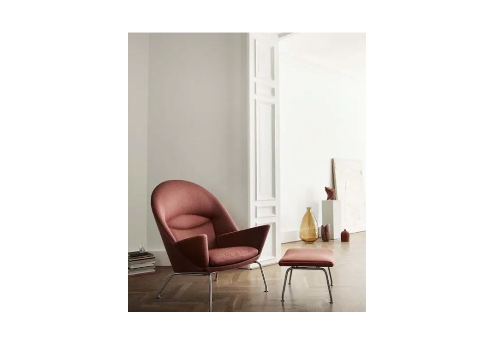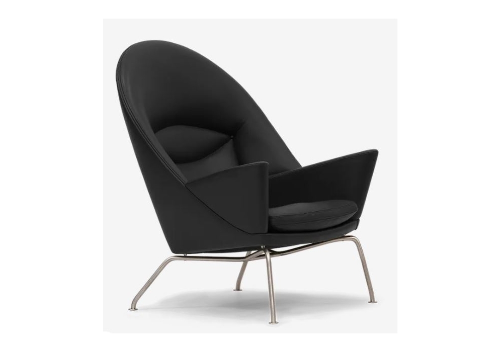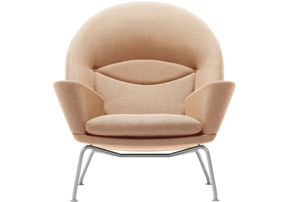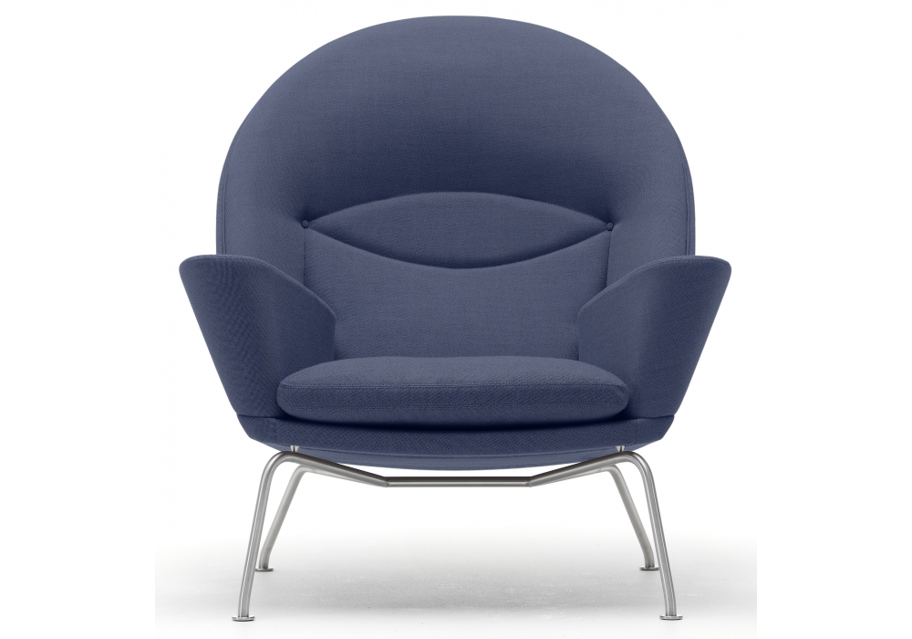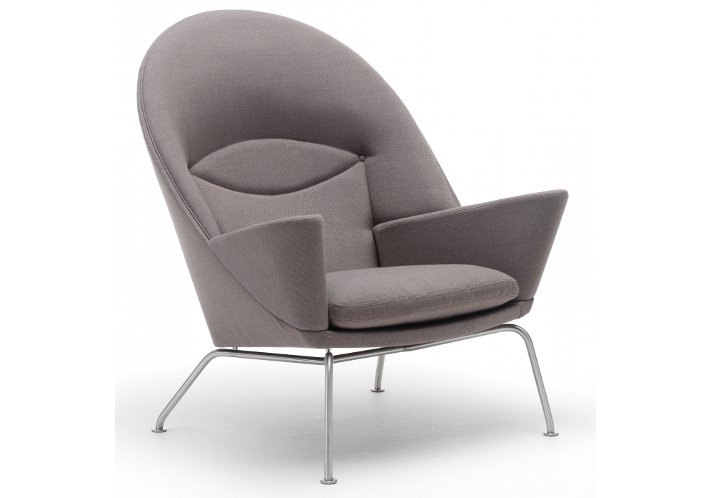 CH468 Oculus Chair firmata da Hans J. Wegner per Carl Hansen & Søn è una poltrona imbottita con gambe in acciaio inox. Rivestimento in tessuto o pelle.