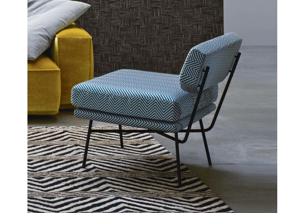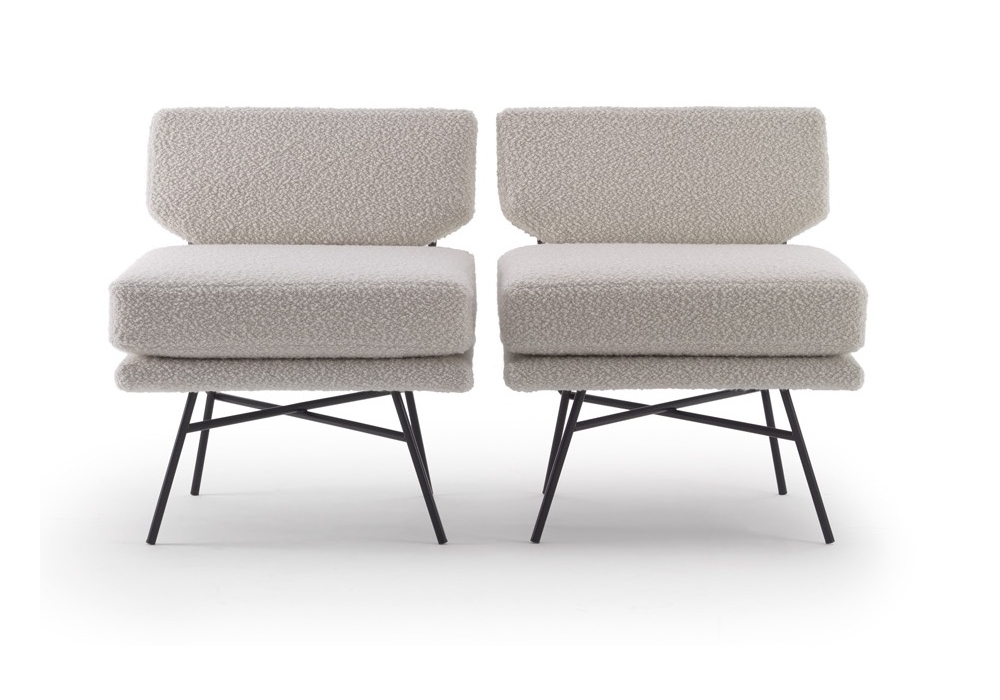 Elettra firmata da B.B.P.R per Arflex è una poltrona con struttura in metallo laccato nero. Cuscino seduta in poliuretano sagomato a densità differenziata / fibra di poliestere. Rivestimento in tessuto o in pelliccia a pelo corto.