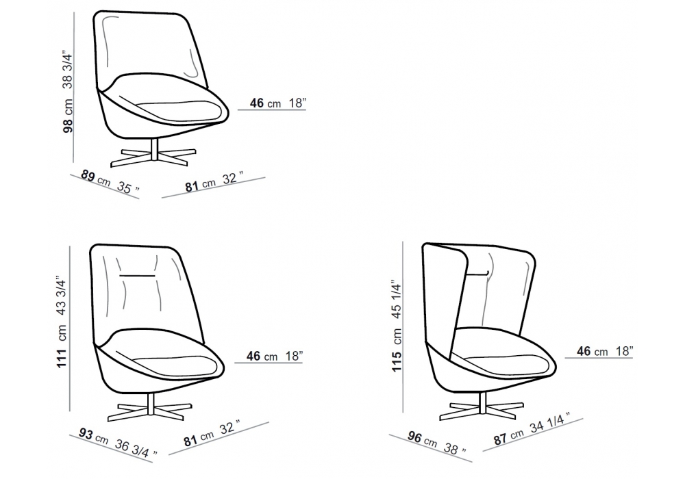 | Dimensioni | 81 x 89 x H 98 cm; 81 x 93 x H 111 cm; 87 x 96 x H 115 cm. |