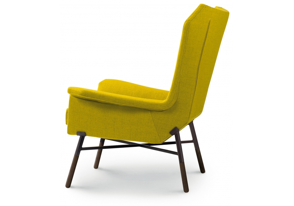 Giulietta firmata da B.B.P.R per Arflex è una poltrona con basamento in metallo laccato nero e legno tinto wengè , rovere o cioccolato. Cuscino seduta in poliuretano sagomato a densità differenziata / fibra di poliestere. Rivestimento in tessuto o pelle.