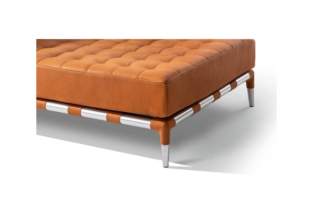 241 Privé firmata da Philippe Starck per Cassina è una poltrona realizzata con montante di sostegno del bracciolo orizzontale in alluminio brillantato, piedi in pressofusione ed estruso di alluminio e rivestimento in pelle con lavorazione capitonné sulla seduta, lo schienale e i braccioli.