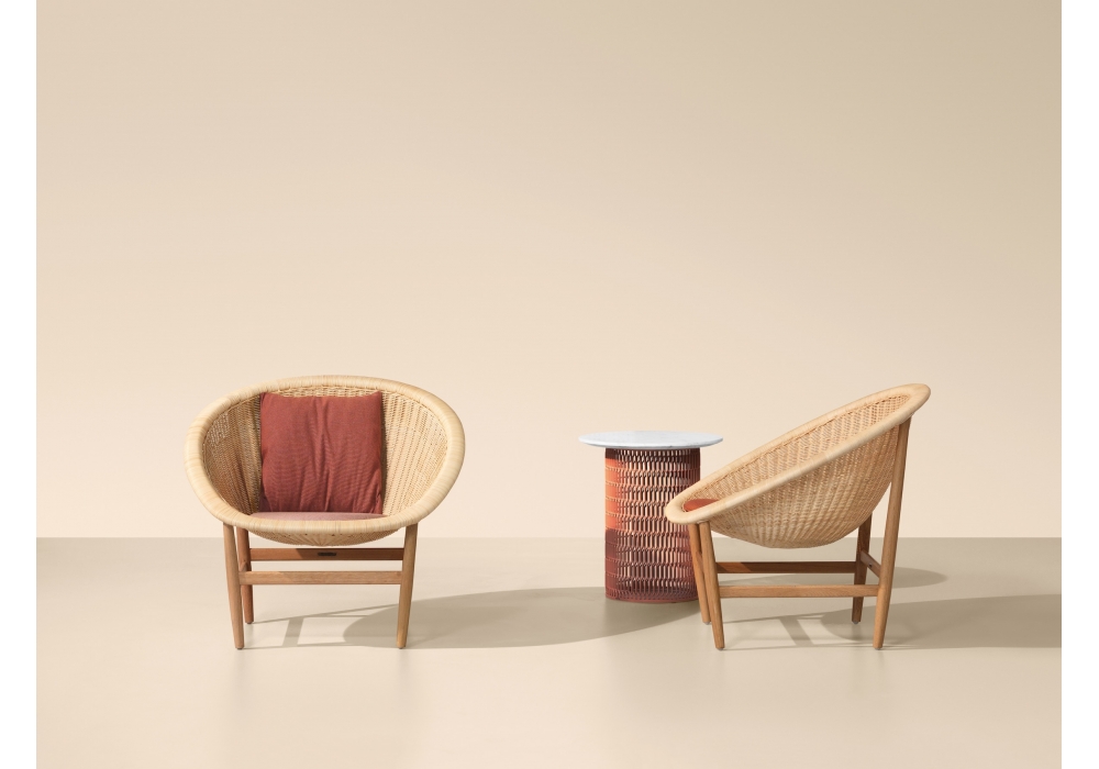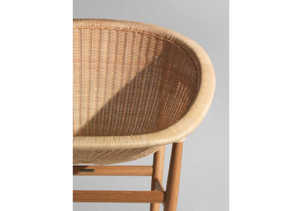 Basket Club firmata da Nanna e Jørgen Ditzel per Kettal è una poltrona con struttura in legno di rovere e scocca in rattan naturale. Cuscino seduta e schienale disponibile in diversi tessuti e colori.