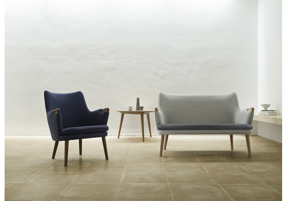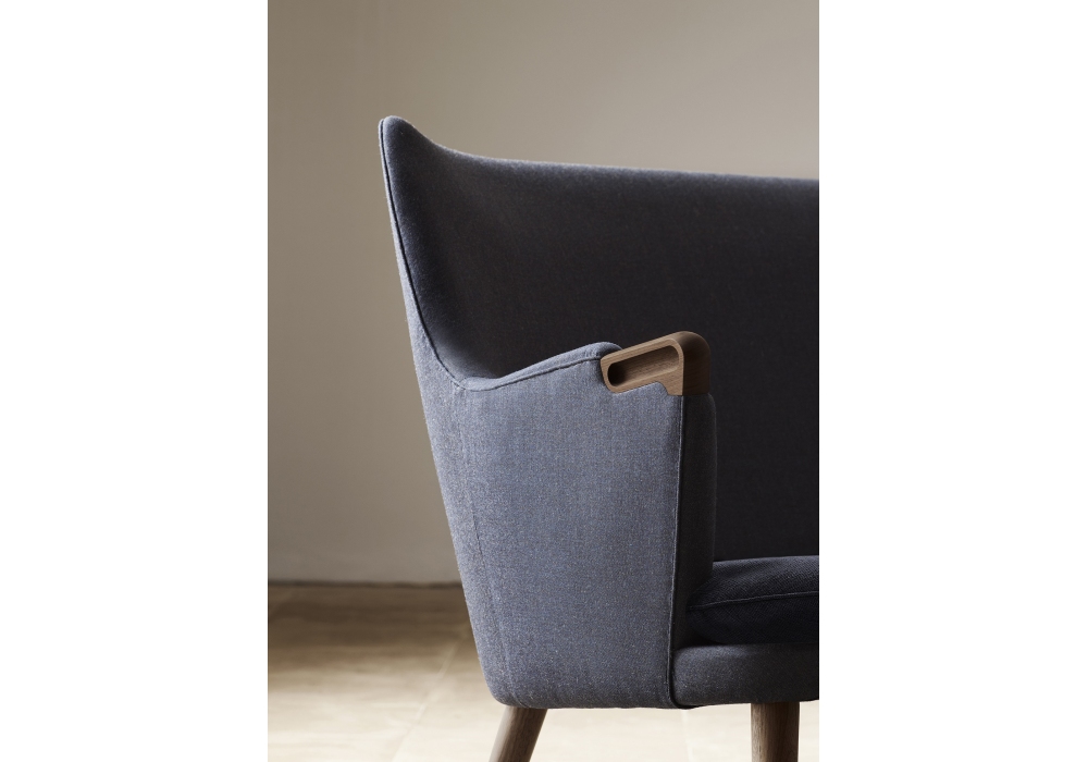 CH71 firmata da Hans J. Wegner per Carl Hansen & Søn è una poltrona con struttura in legno massello. Imbottitura in schiuma fredda ignifuga CMHR. Rivestimento in tessuto. Il cuscino di seduta è rivestito in tessuto in diverse finiture.