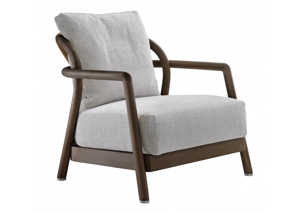 Alison firmata da Carlo Colombo per Flexform è una poltrona con struttura in legno di noce canaletto o frassino. Rivestimento seduta e cuscino schienale in tessuto o pelle. Schienale con fascia in cuoio. Piedi in metallo.