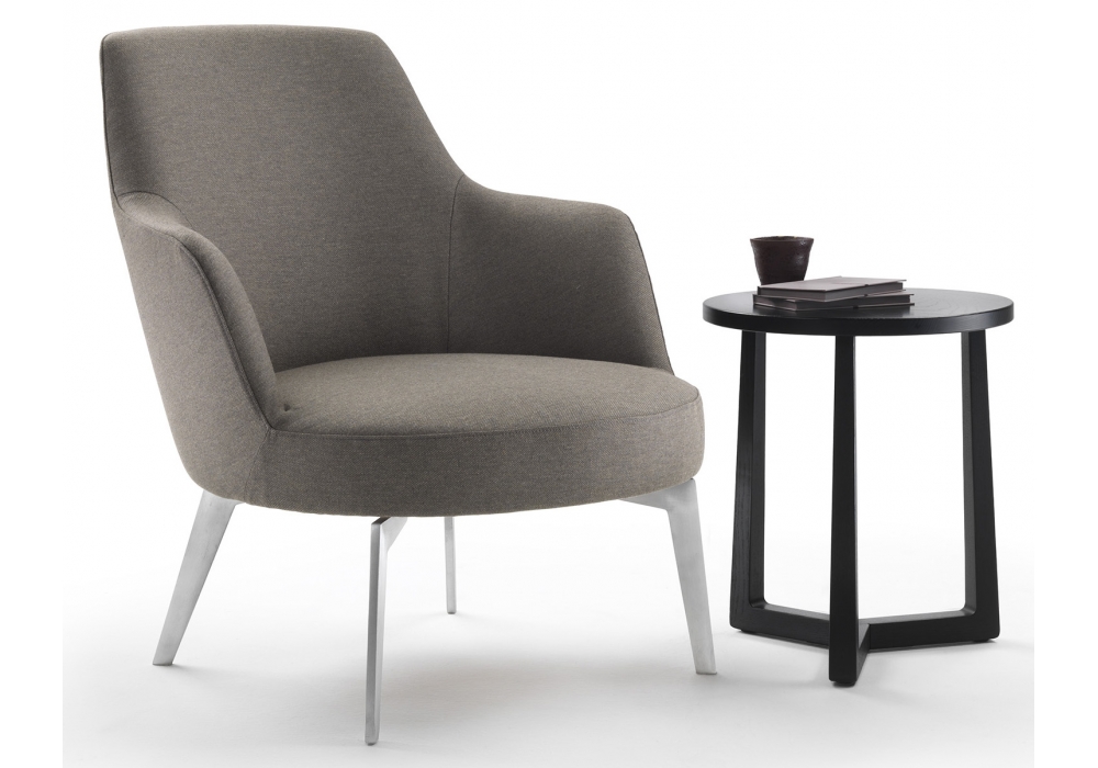 Hera firmata da Antonio Citterio per Flexform è una poltrona con gambe in metallo e rivestimento in tessuto o pelle. Disponibile in due modelli: con o senza braccioli.