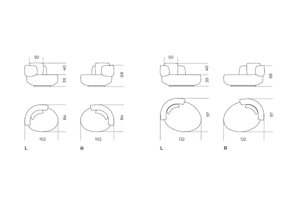 Audrey firmata da Massimo Castagna per Gallotti&Radice è una poltrona girevole in poliuretano espanso indeformabile a densità differenziate e fibra poliestere con struttura interna legno, fornita di un cuscino schienale in fibra poliestere. Basamento in mdf in massa nero. Disponibile con rivestimento in tessuto o pelle nei colori del campionario. Cuscino decorativo in fibra poliestere, su richiesta.