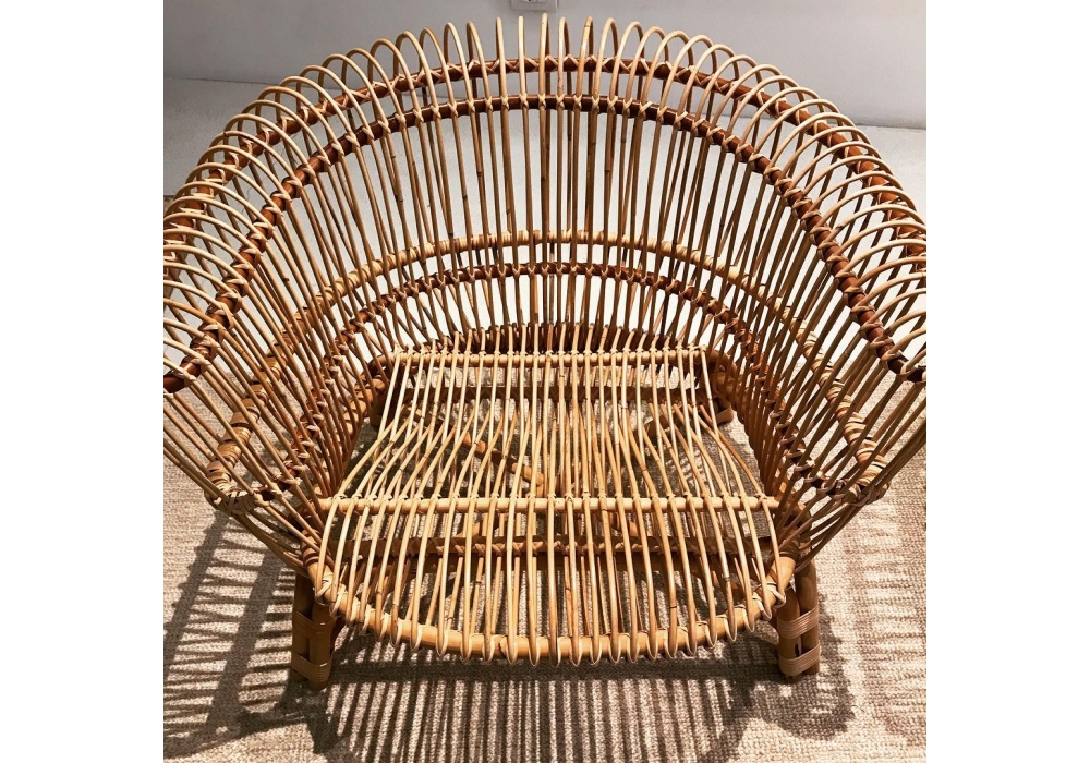 Silvia firmata da P. Tilche / Archivio storico Bonacina per DePadova è una poltrona con struttura in malacca, armatura in canna d'India e legature in corteccia di giunco. Piedini in termoplastica.