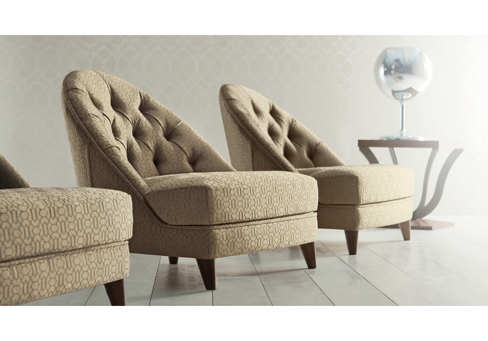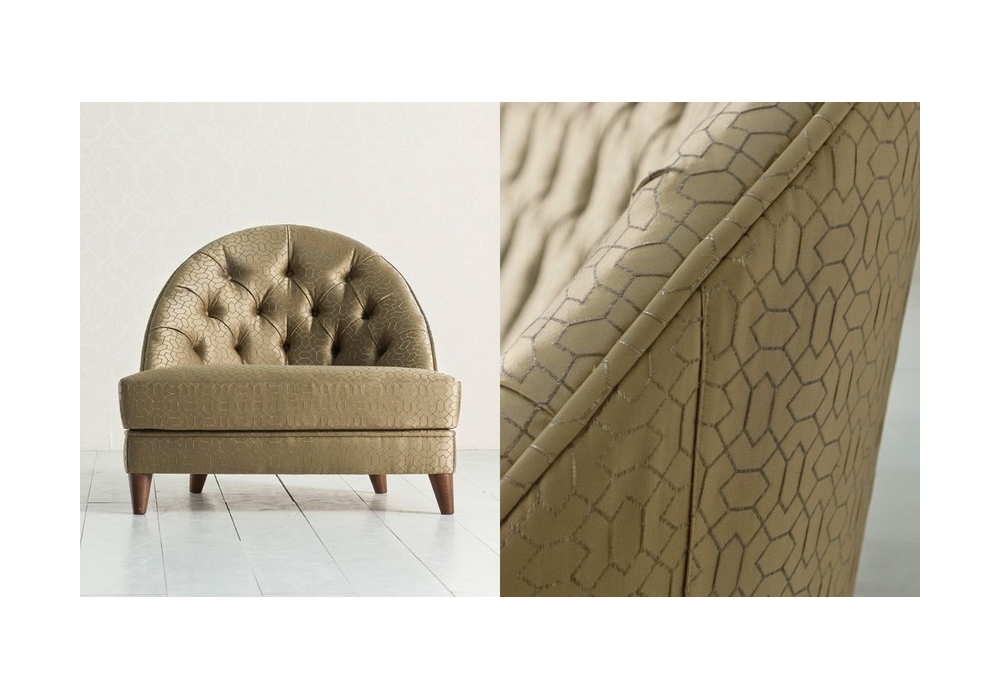 Dalila firmata da Castello Lagravinese Studio per Opera Contemporary è una poltrona con una raffinata lavorazione capitonnè presente sullo schienale e rivestimento disponibile in tessuto o pelle. Base in legno, disponibile in diverse finiture.