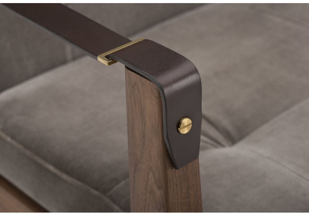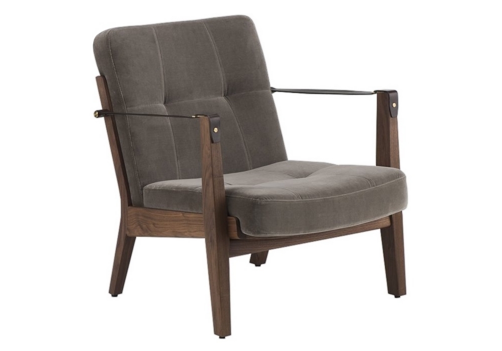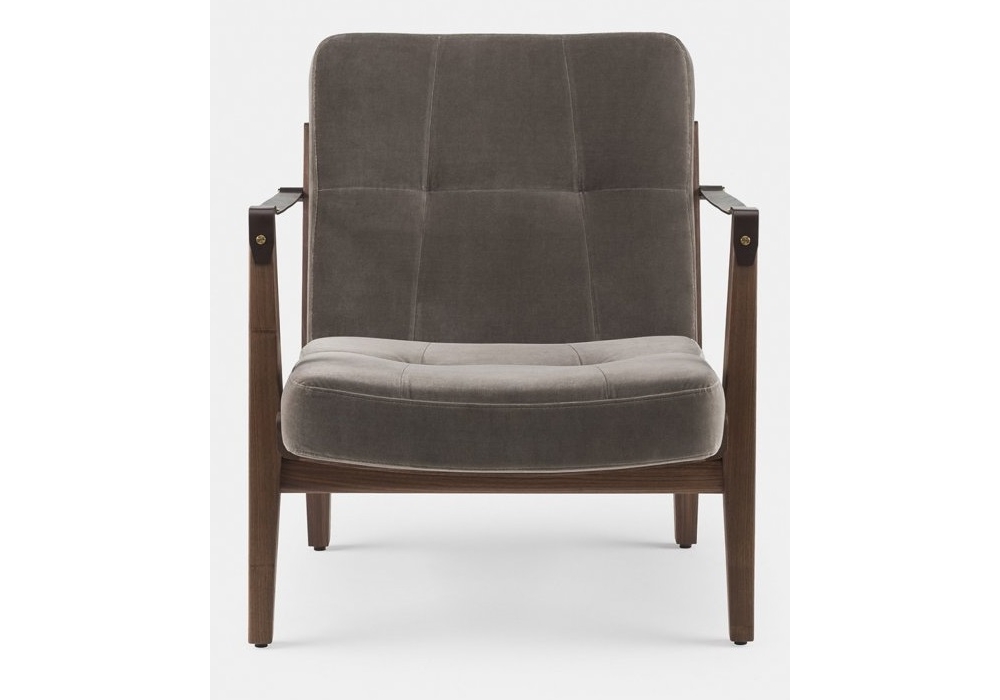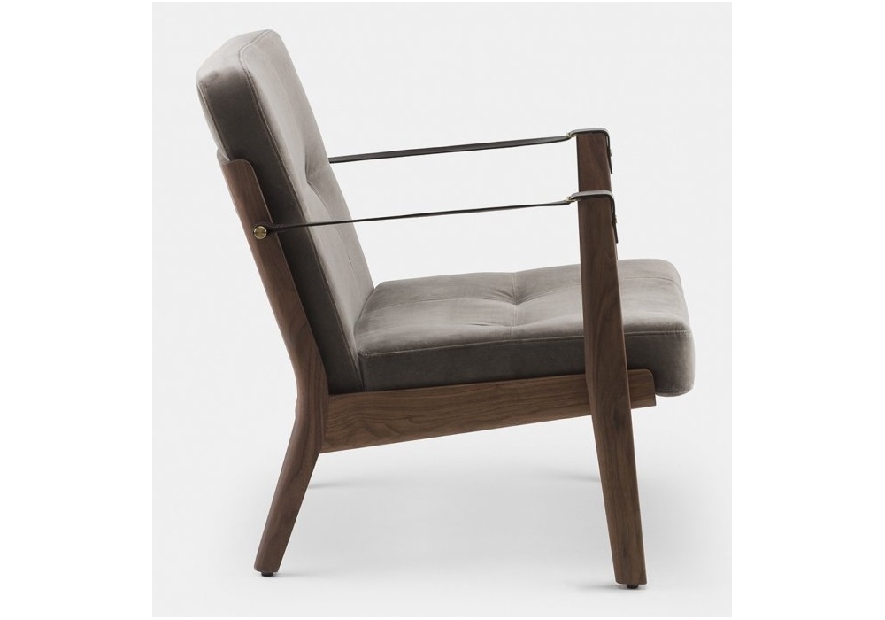 Capo firmata da Neri & Hu per De La Espada è una poltrona con rivestimento in tessuto o pelle e struttura in legno disponibile in diverse finiture. Braccioli in pelle nera o marrone con dettagli color ottone.